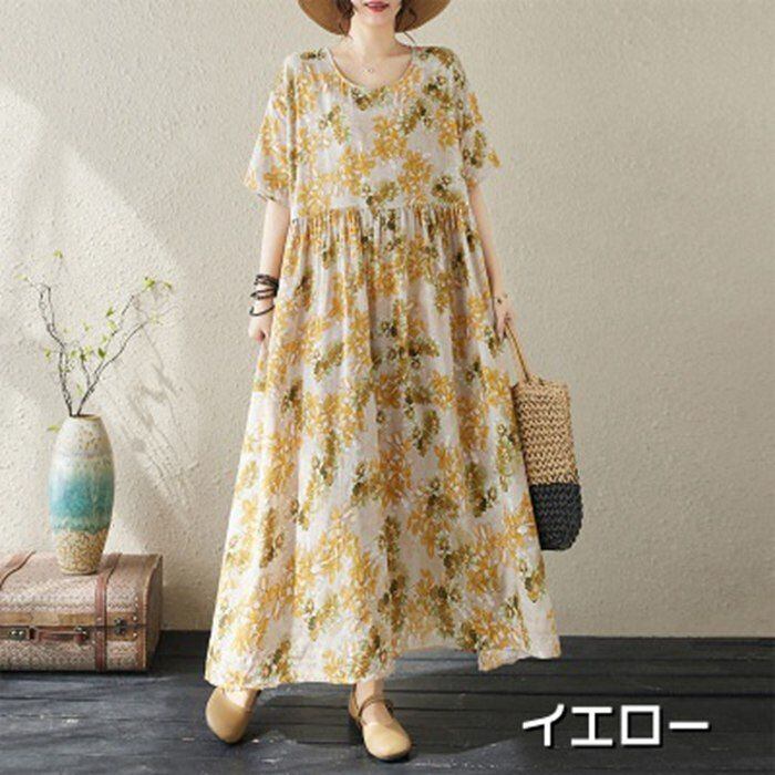 マキシワンピース レディース 半袖 ワンピース ロング丈 夏 綿 麻 刺繍 Aライン ゆったり 体型カバー フレア 大きいサイズ きれいめ リゾート オシャレ シンプル カジュアル 通勤 大人 chaoliu298 | オキナ商店