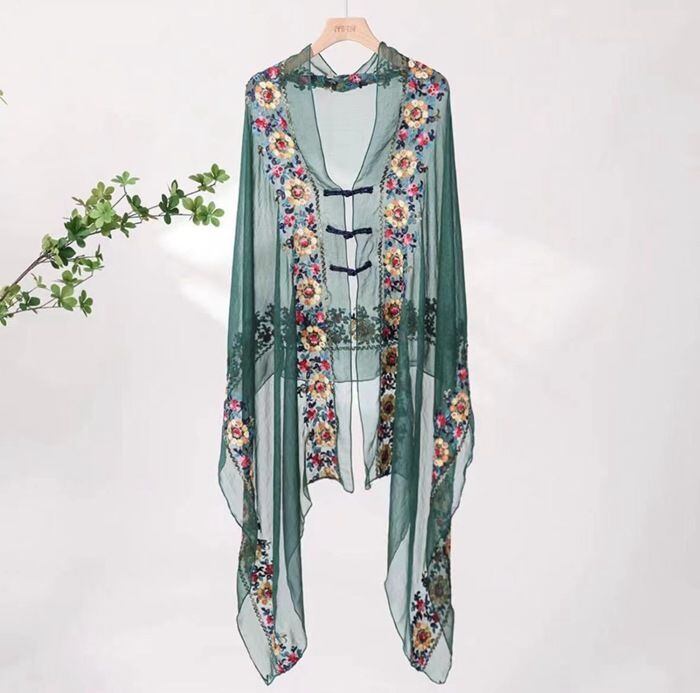 ショール ストール 大判 チャイナボタン シフォン ポンチョ レディース 肩掛け エスニック柄 ポンチョコート 薄手 マント 旅行 マフラー 夏 カーディガン クーラー対策 大判ストール サマーカーディガン シアー UVカット 軽量 薄手 紫外線対策 UV対策 日焼け防止 羽織もの ファッション 40代 50代 30代 wenqiong04
