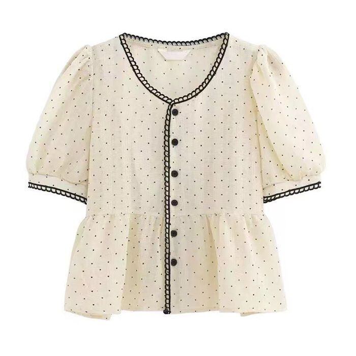 ブラウス シャツブラウス レディース トップス シャツ 半袖 ゆったり 夏 フレアブラウス 水玉柄 フェミニン 大人xiaocc14