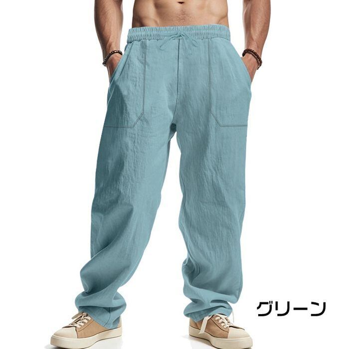 綿麻風パンツ メンズ テーパードパンツ ボトムス 無地 イージーパンツ リラックス カジュアルパンツ ゆったり ナチュラル おしゃれ ルームウェア 春 夏 父の日 ギフトyifengyu133 | オキナ商店