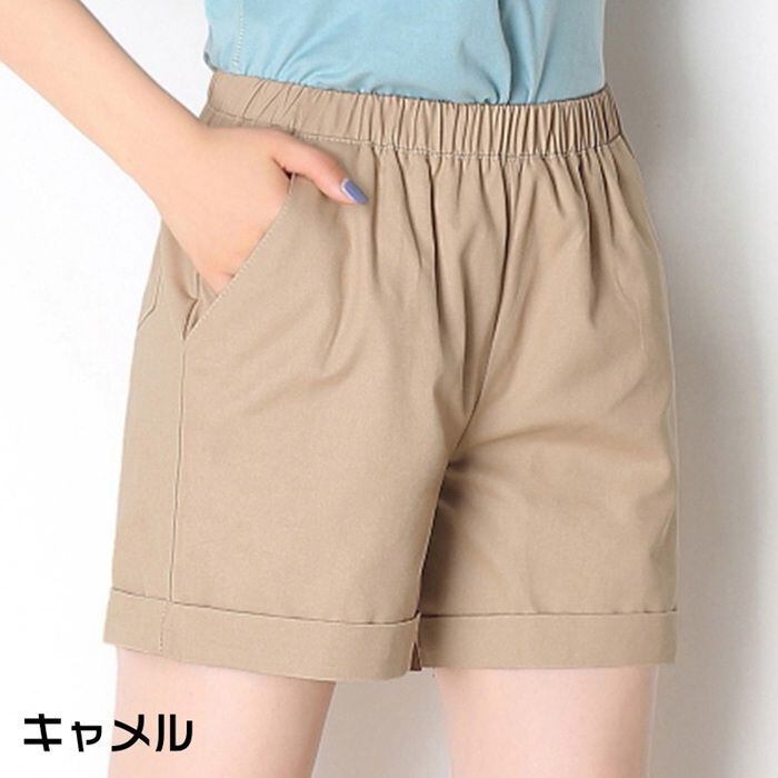 ショートパンツ レディース ボトムス 夏 ファッション コットン混紡 ベーシック ウエストゴム 短パン 無地 新作 夏物 涼しい カジュアル フィット感mingdu02