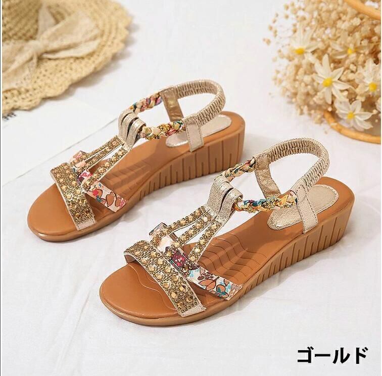 サンダル レディース ビーチサンダル ストラップ 厚底サンダル 楽ちん煌めきサンダル フラットサンダル ローヒール コンフォート ビジュー 靴 美足サンダル 細ストラップ ウェッジソール 歩きやすい アウトドア 痛くない 軽量 xzxiaoyun348 | オキナ商店
