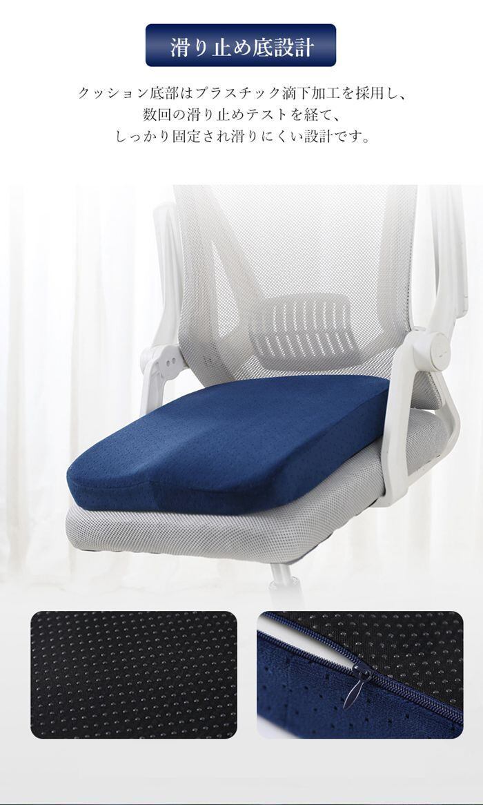 座布団 クッション 低反発 椅子 大きめ 人間工学 体圧分散 デスクチェア オフィスチェア カバー洗える 紺色 灰色 shumian14