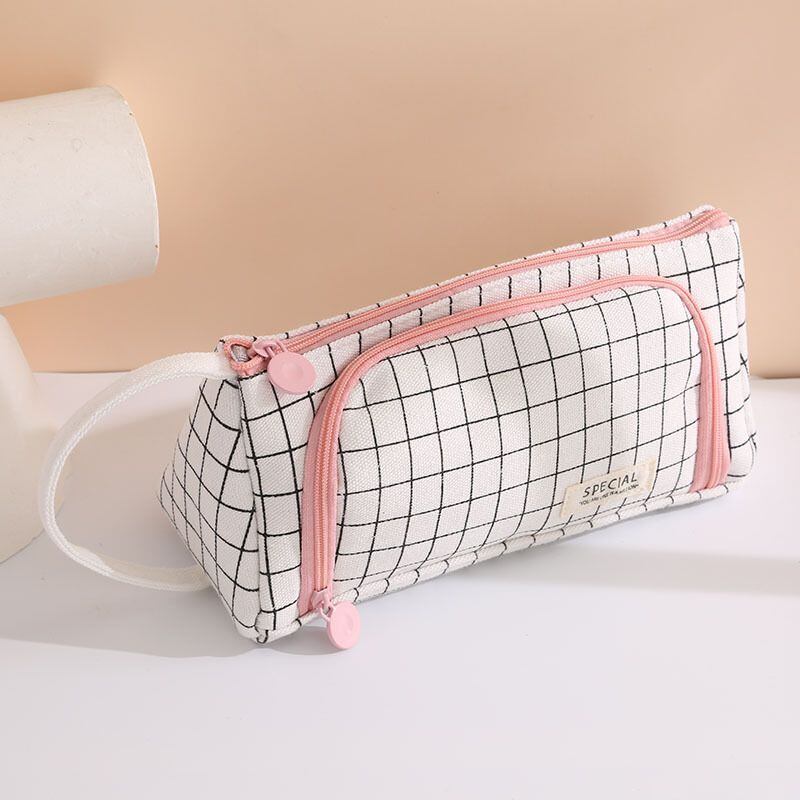 シンプルなチェック柄ペンケース 内部に複数のコンパートメント 滑らかなジッパー 丈夫な持ち運び用ペンケース 学校用品に最適 入学準備シーズン 友人へのプレゼントにも xzxiaoyun336 | オキナ商店