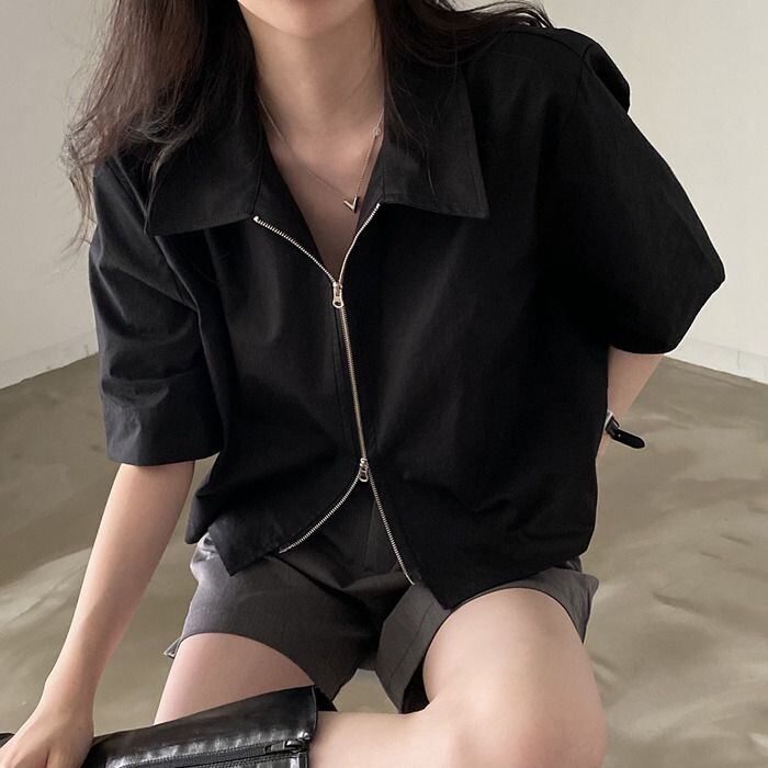 レディース トップス シャツブラウス シャツ ブラウス ジップアップシャツ 襟付き スリム 清潔感 無地 袖あり 大人カジュアル カジュアル フェミニン お洒落 夏 ママコーデ 20代 30代 40代xiaocc24