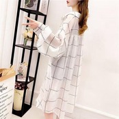 チェックシャツ シアー トップス ロングシャツ UVカット レディース 長袖 シアートップス シフォン ボリューム袖 バルーン袖 セクシー 透け感 大人 エレガント 華やか 春 夏 紫外線対応 韓国ファッション 20代 30代 40代 50代xiaocc22