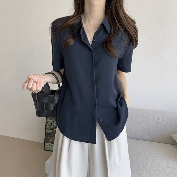 半袖シャツ レディース ブラウス オフィス ビジネス ワイシャツ 半袖ブラウス ノーアイロン シワになりにくい スリム 襟付き 前開き シャツ 韓国ファッション 20代 30代 40代 50代xiaocc18