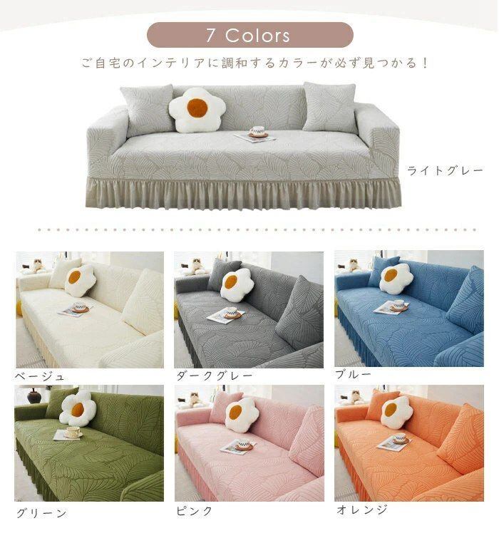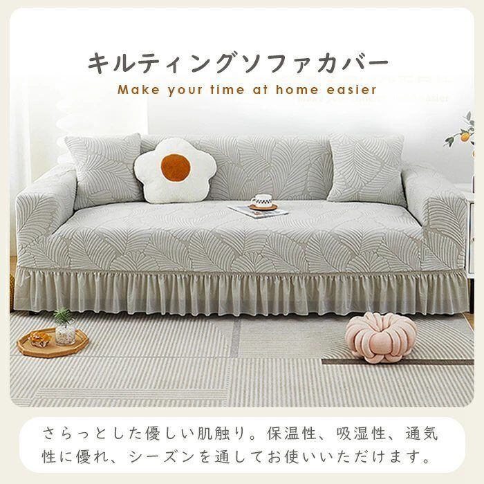 ソファーカバー フリル 2人掛け 3人掛け 伸びる フィット感 ソファ保護カバー 北欧風 スカート裾 可愛い 葉柄 伸縮素材 柔らかい 撥水加工 滑り止め 傷防止 汚れ防止 ストレッチ 四季適用 一体型カバー 肘付きxiaokb311 | オキナ商店