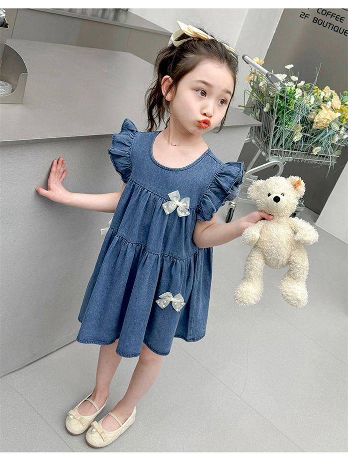 子供服 ワンピース フレア袖 子供服 女の子 デニム ブルーワンピース キッズ 女児 小学生 キッズ 可愛い おしゃれ カジュアル 90cm 100cm 110cm 120cm 130cm jinrui06