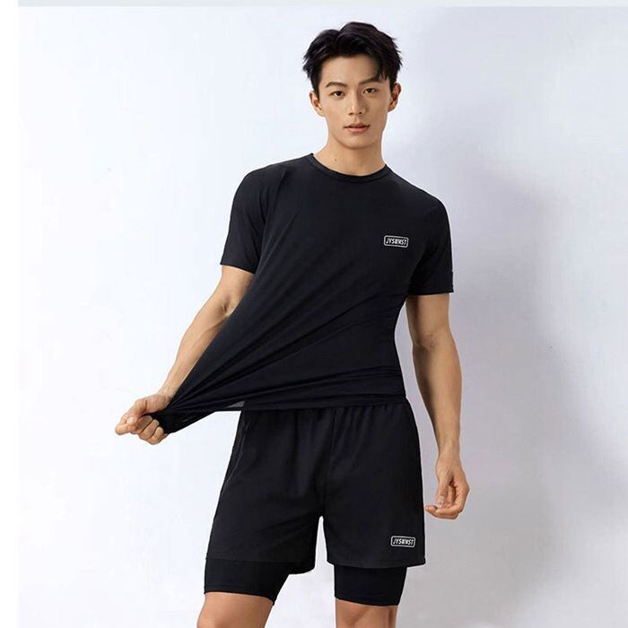 フィットネス水着 メンズ 上下セット 水着 競泳水着 スイムウェア フィットネス 2点セット 競泳用 競泳 水泳 練習用水着 メンズフィットネス水着 プール 海水浴 温泉 ジム 水陸両用 半袖 サーフィン ビーチ 海xiaokb306 | オキナ商店