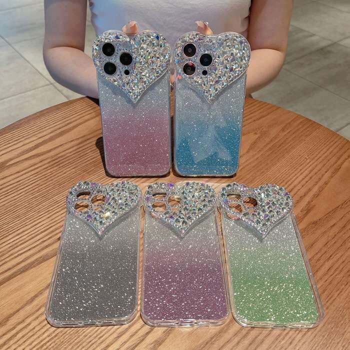 iPhoneケース ハート グラデーション キラキラ 光沢 おしゃれ レディース iphone16 15 14 13 Pro Max対応 ギフト 誕生日プレゼント xzzhang266 | オキナ商店