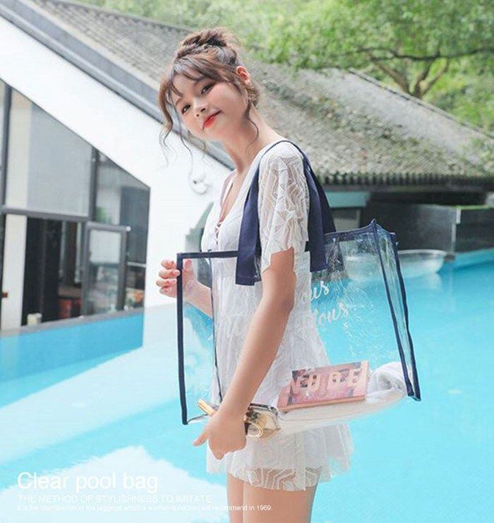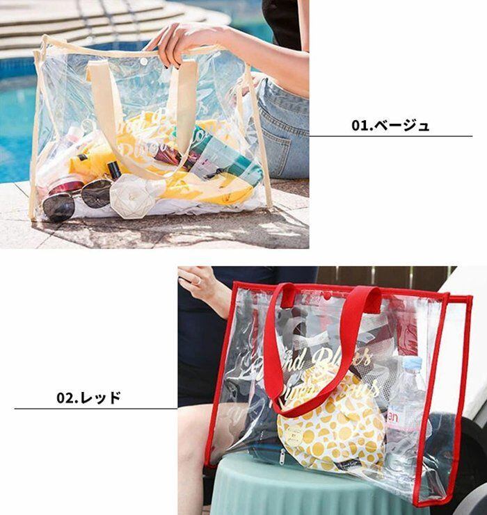 プールバッグ おしゃれ トート 大人 女の子 中学生 高校生 ビーチバッグ ビニールバッグ 大容量 クリアバッグ ショルダー プール 透明 トート 大きい 折りたたみ 女の子 レディース 防水 xzzhang280 | オキナ商店