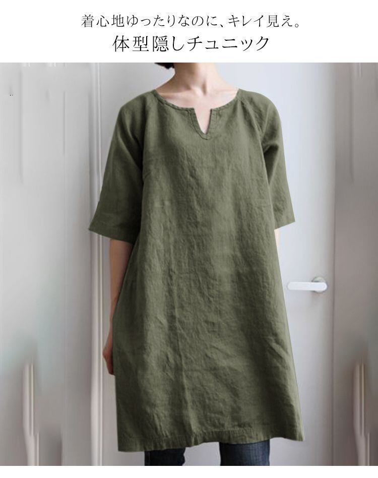 新品 チュニック ロングシャツ シャツ レディース ワンピース 夏 特意 プルオーバー 綿麻 シャツワンピース 半袖 大きいサイズ ゆるシルエット 体型カバー 無地 30代 40代 kkkodz | オキナ商店