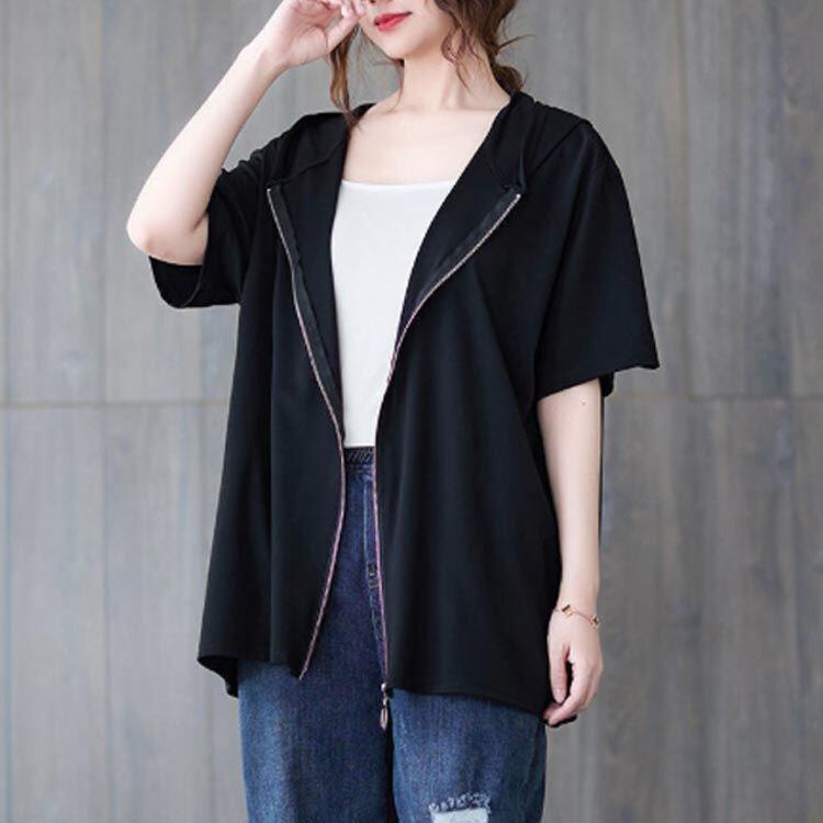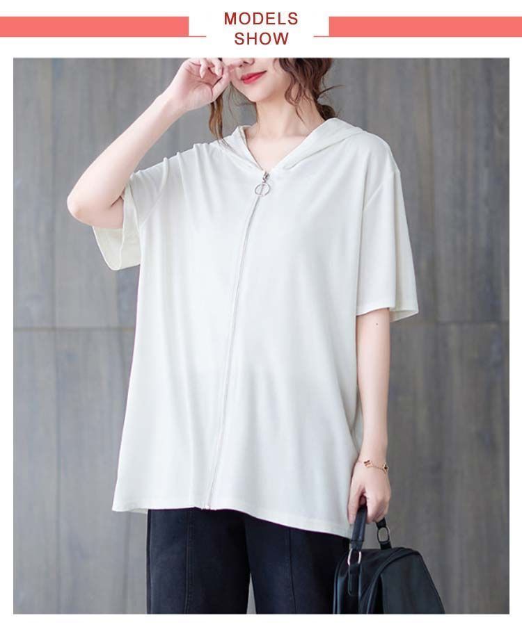 新品 レディース ビッグシルエット 前開き サマーパーカー 半袖パーカー カジュアル 体型カバー トップス 羽織り おしゃれ 五分袖 フード付きパーカー サマーパーカー 大きいサイズ ゆったり 着?せ かわ kkkxxl | オキナ商店