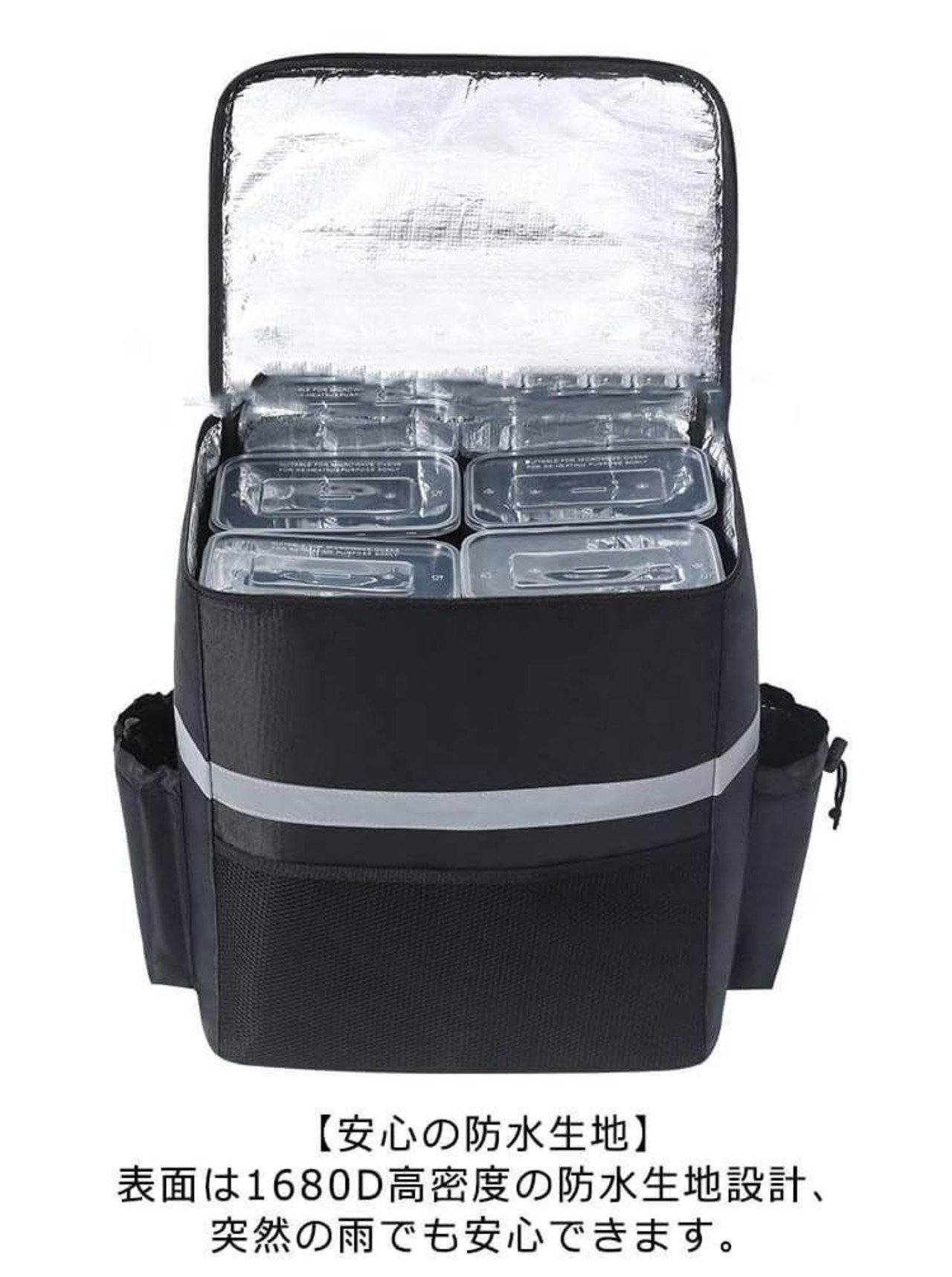 表面は1680D高密度の防水生地設計、突然の雨でも安心できます。デリバリーバックだけでな普段の買い物からピクニック、釣り、キャンプ等日常の様々なシーンで活躍できます。
