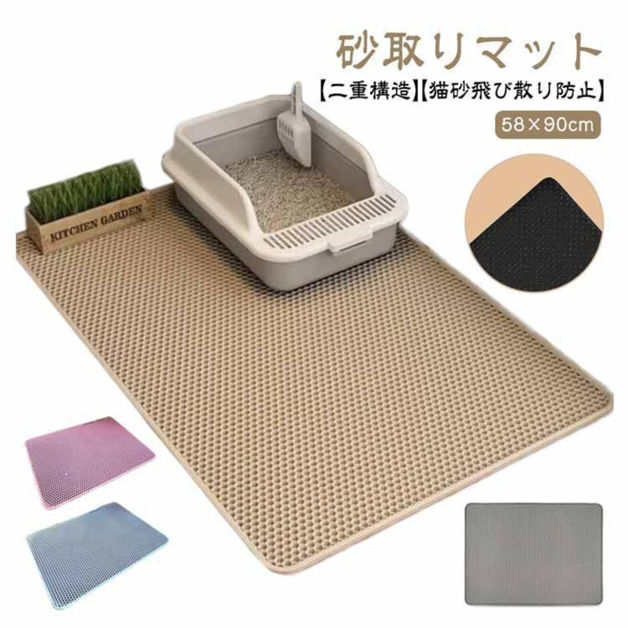 新品 砂取りマット 猫砂 58×90cm マット 砂取りマット トイレマット 特大 猫砂キャッチャー 猫 猫砂飛び散り防止 猫砂マット 二重構造 滑り止め 清潔 お手入れ簡単 マット kkklin | オキナ商店