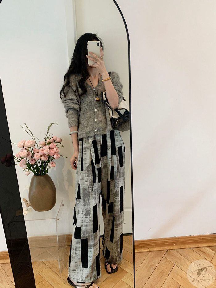 新品 ワイドパンツ レディース ボトムス 柄パンツ 総柄 涼しい ハイウエスト 美脚 パンツ ウエストゴム ゆったり 大きめ ズボン 体型カバー 春 夏 大人 可愛い 部屋着 通勤 カジュアル 薄手 夏用 ルームウェア 6COLOR kkkhde | オキナ商店