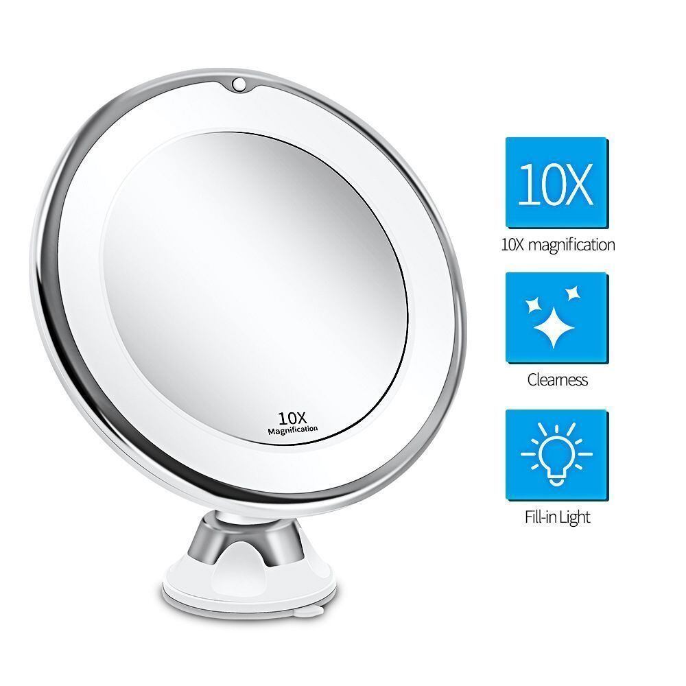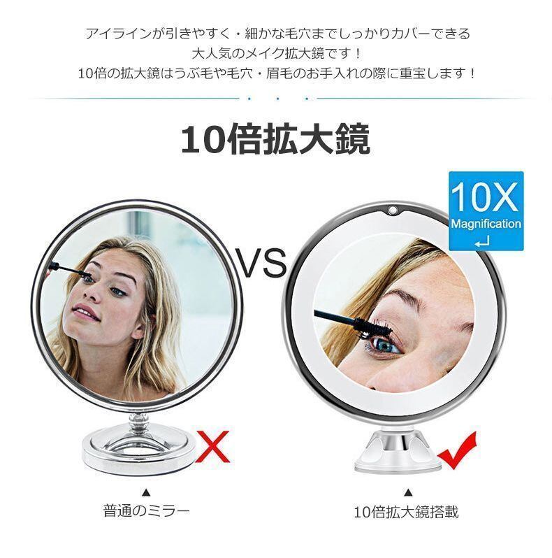 新品 10倍拡大鏡 化粧鏡 LED化粧鏡 卓上鏡 浴室鏡 女優ミラー メイクミラー 壁掛けメイクミラー 吸盤ロック付き LEDミラー LED 360度回転ミラー スタンドミラー kkkuje | オキナ商店