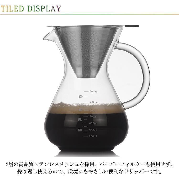 新品 コーヒー カラフェ セット 800ml ステンレス フィルター 耐熱ガラス ドリッパー コーヒーサーバー コーヒードリッパー プレゼント コーヒードリップ器具 ピッチャー ハンドドリップ 4杯分 4人 kkkgpe | オキナ商店