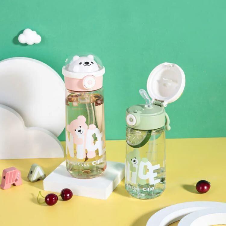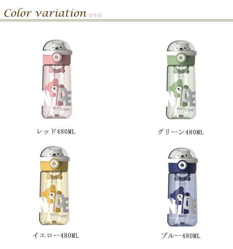 新品 水筒 ストロー キッズ ウォーターボトル 水分補給 夏 プラスチック ワンタッチ 軽量 クリア 480ML 620ML 熊 子供 tritan 漏れない 幼稚園 保育園 公園遊び ストロー付き水筒 ス kkkxih | オキナ商店