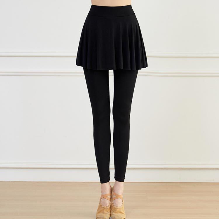 新品 バレエ スパッツ付きスカート スカート付きスパッツ 大人 ジュニア 女子 パンツ ボトムス ストレッチ スパッツ付き 伸縮性 透けない 7分丈 9分丈 ブラック 体型カバー 練習着 レッスン バレエ用 kkkkbp | オキナ商店