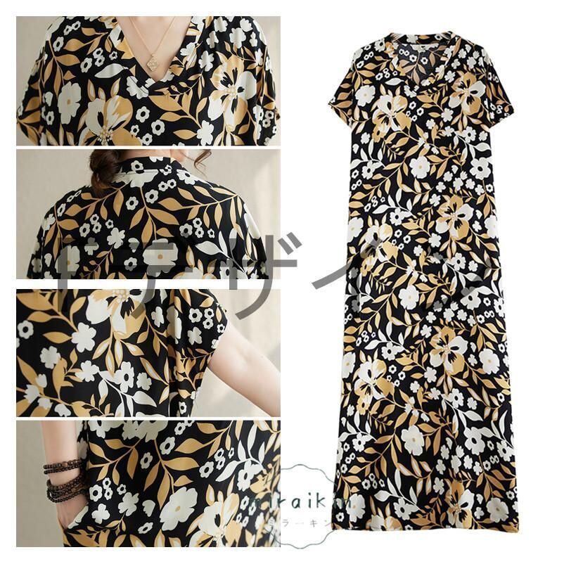 マキシワンピース 花ワンピース 半袖ワンピース マキシワンピース ビッグ ワイド オーバー 大 旅行 リゾート エスニック