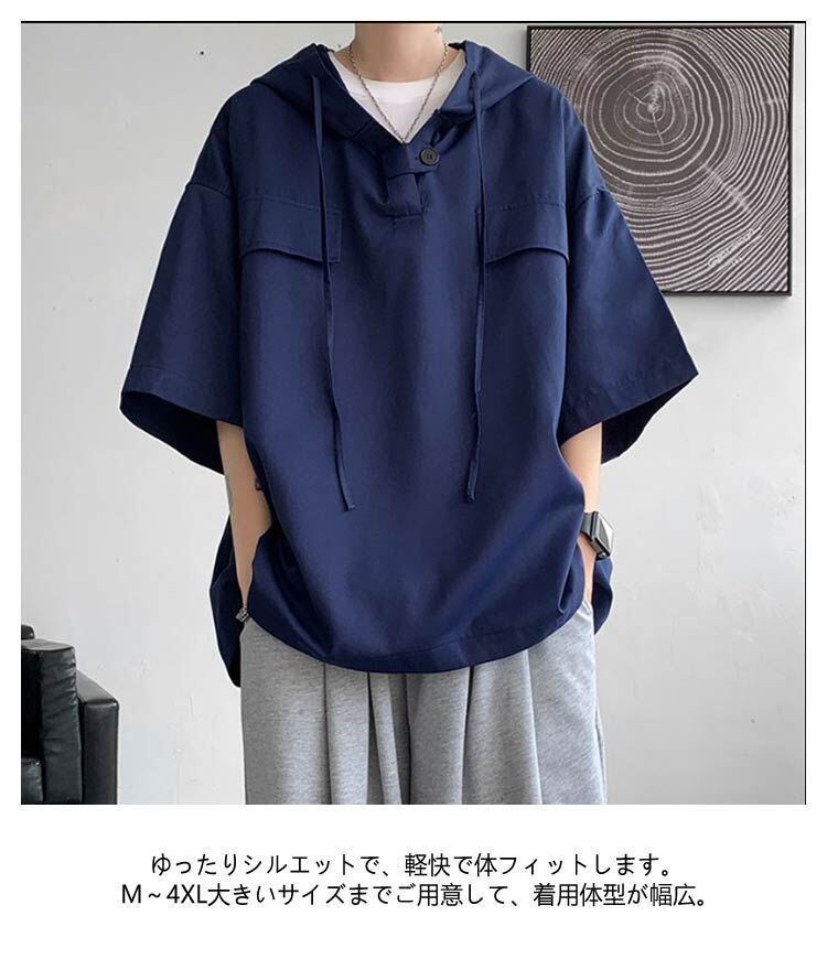 新品 フード付き プルオーバー メンズ 無地 大きいサイズ 半袖 サマーパーカー ゆったり 薄手 パーカー プルオーバーパーカー ビッグシルエット 夏パーカー 韓国ファッション パーカー カッコイイ シンプ kkkrbt | オキナ商店