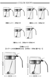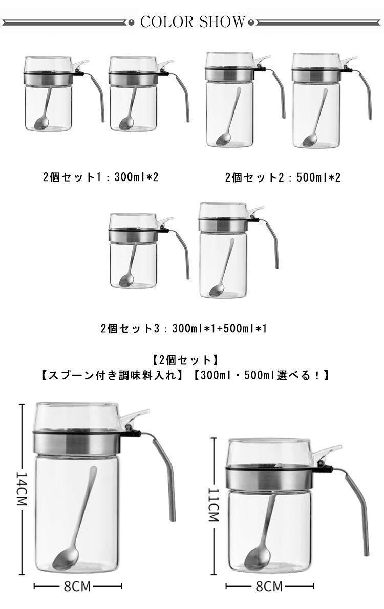 新品 2個セット 調味料入れ スプーン付き ステンレス 耐熱 ガラス 調味料ポット 500ml 300ml 片手開閉 スパイスジャー 砂糖 塩 スパイス 密閉 保存 容器 調味料ケース スプーン 使いやすい kkktvv | オキナ商店