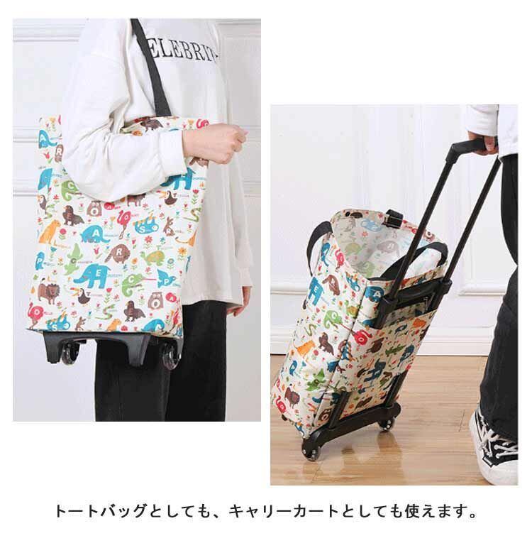 おしゃれな柄が目を引くカート。キャスター付きで持ち運びラクラク! 大容量でたくさんのお買い物もラクラク!