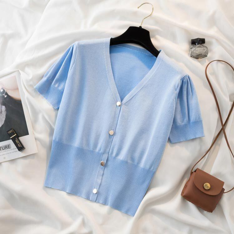 韓国人気の前ボタンのサマーニットです。