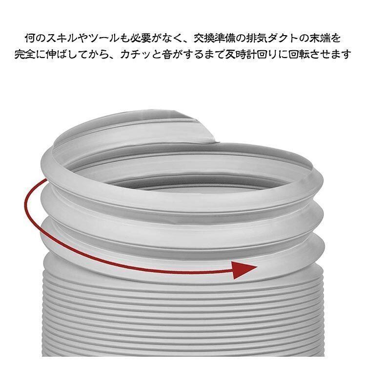 【インストールが簡単】何のスキルやツールも必要がなく、交換準備の排気ダクトの末端を完全に伸ばしてから、カチッと音がするまで反時計回りに回転させます。