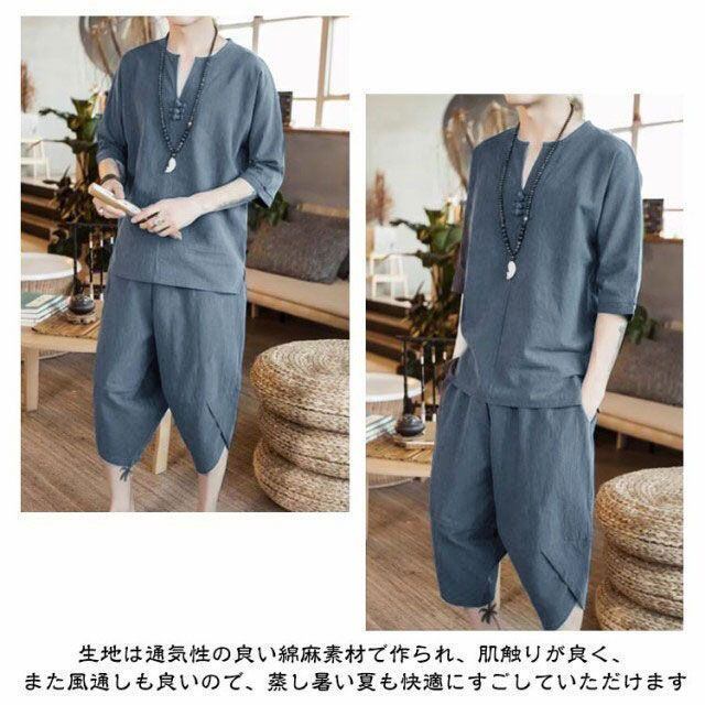 新品 甚平 メンズ おしゃれ パジャマ セットアップ 綿 麻 涼しい 涼感 涼しい 上下セット 男性 半袖 Tシャツ 7分丈 サルエルパンツ 部屋着 ルームウェア ワイドパンツ 寝巻き 入院 夏 プレゼント kkklbd | オキナ商店