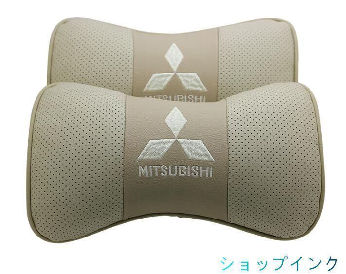 新品 三菱 Mitsubishi ロゴ刺繍 本革 レザー 自動車 2個セット ネックパッド 頚椎サポート 首枕 汎用品 4色は選択できます デリカD:5 ミラージュ パジェロ eKワゴン アウトランダー kkkezm | オキナ商店