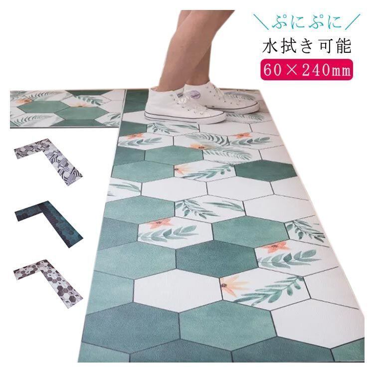 新品 キッチン 台所マット キッチンマット ロングマット 拭ける 水拭き クッションフロア 60×240 北欧 撥水 キッチン マット 長め おしゃれ 清潔 やわらか ぷにぷに 洗濯不要 キッチンファブリッ kkkneh | オキナ商店