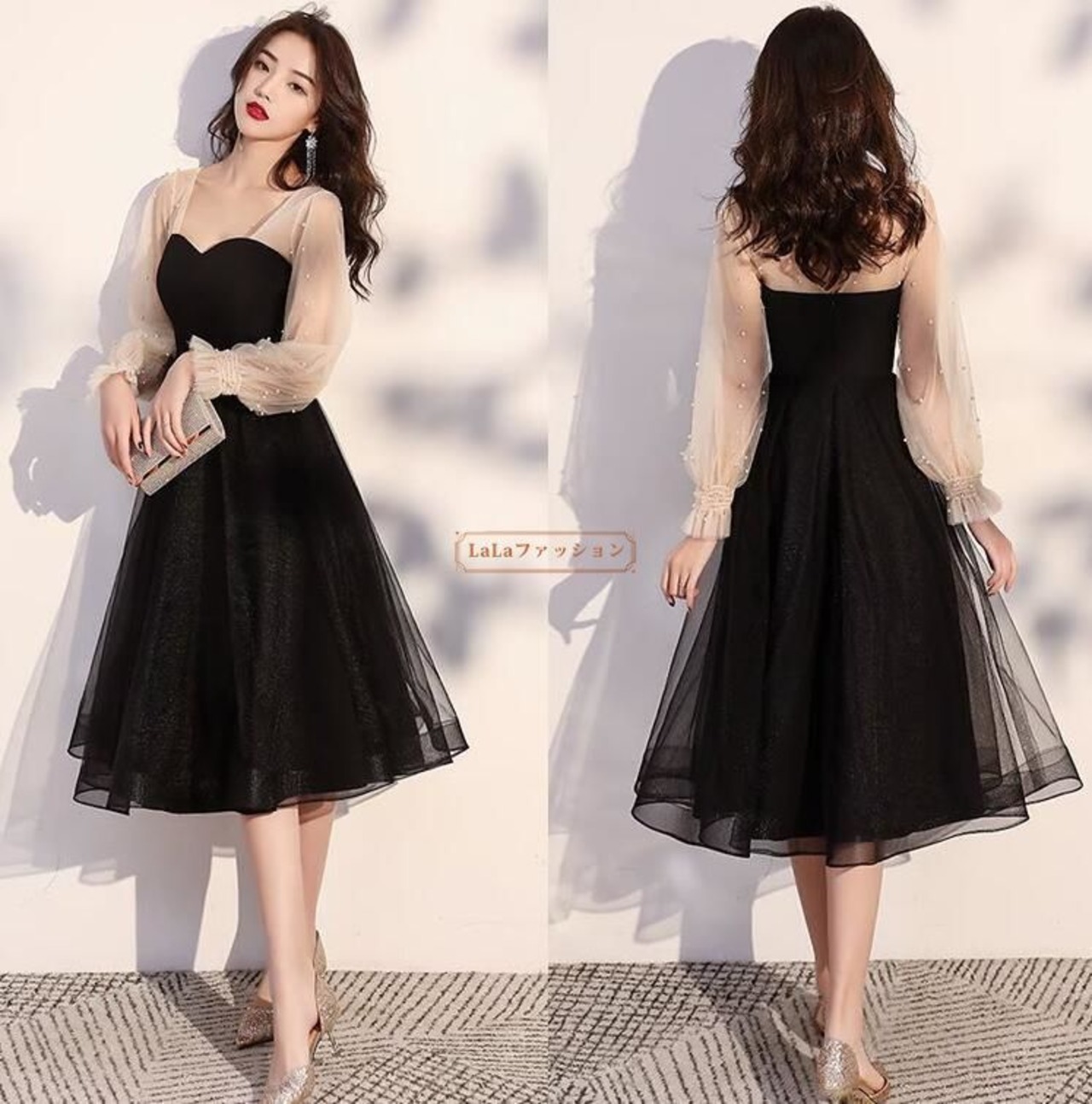 パーティードレス ワンピース ミドル丈 ドレス 結婚式 二次会 お呼ばれフ ォーマル 袖あり