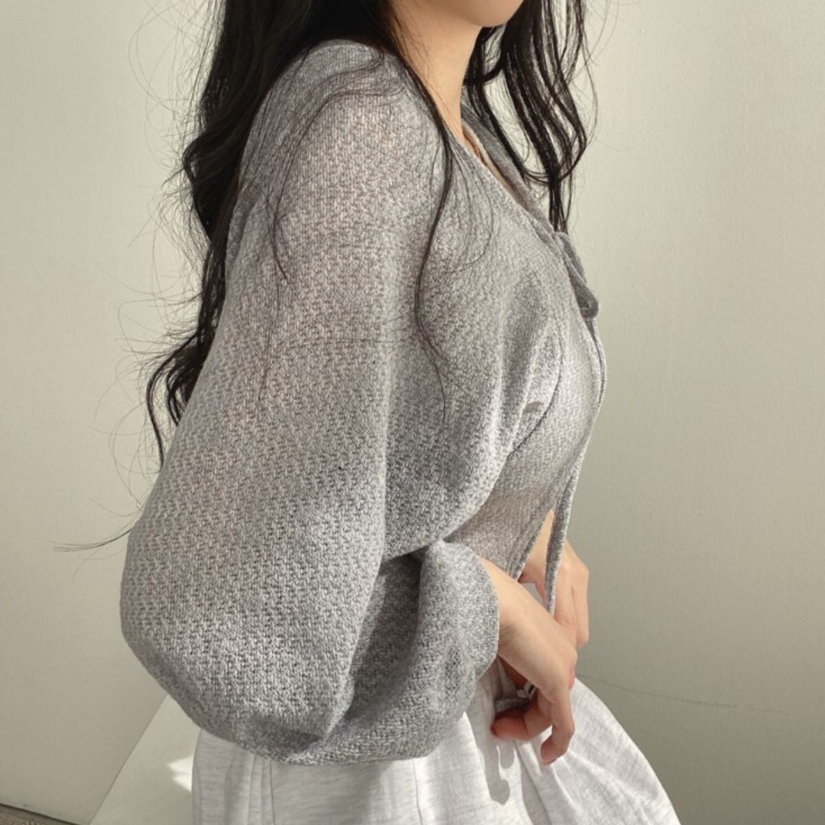 新品 ショート丈 カーディガン サマーカーディガン レディース トップス ショート アウター 薄手 羽織り 短丈 きれいめ ボレロ 上着 韓国ファッション 長袖 シンプル 黒 白 グレー モノトーン 冷房対策 オフィス 通勤 通学 服 かわいい kkkaar | オキナ商店