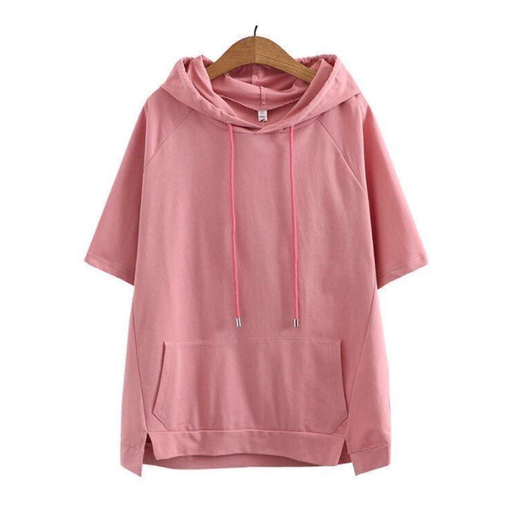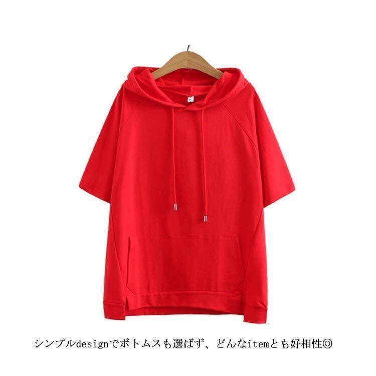 新品 全5色×5サイズ!パーカー レディース フード付き tシャツ 大きサイズ 半袖パーカー 5分袖パーカー プルオーバー 薄手 夏用 トップス フード付きtシャツ スリット コットン カジュアル kkkaws | オキナ商店