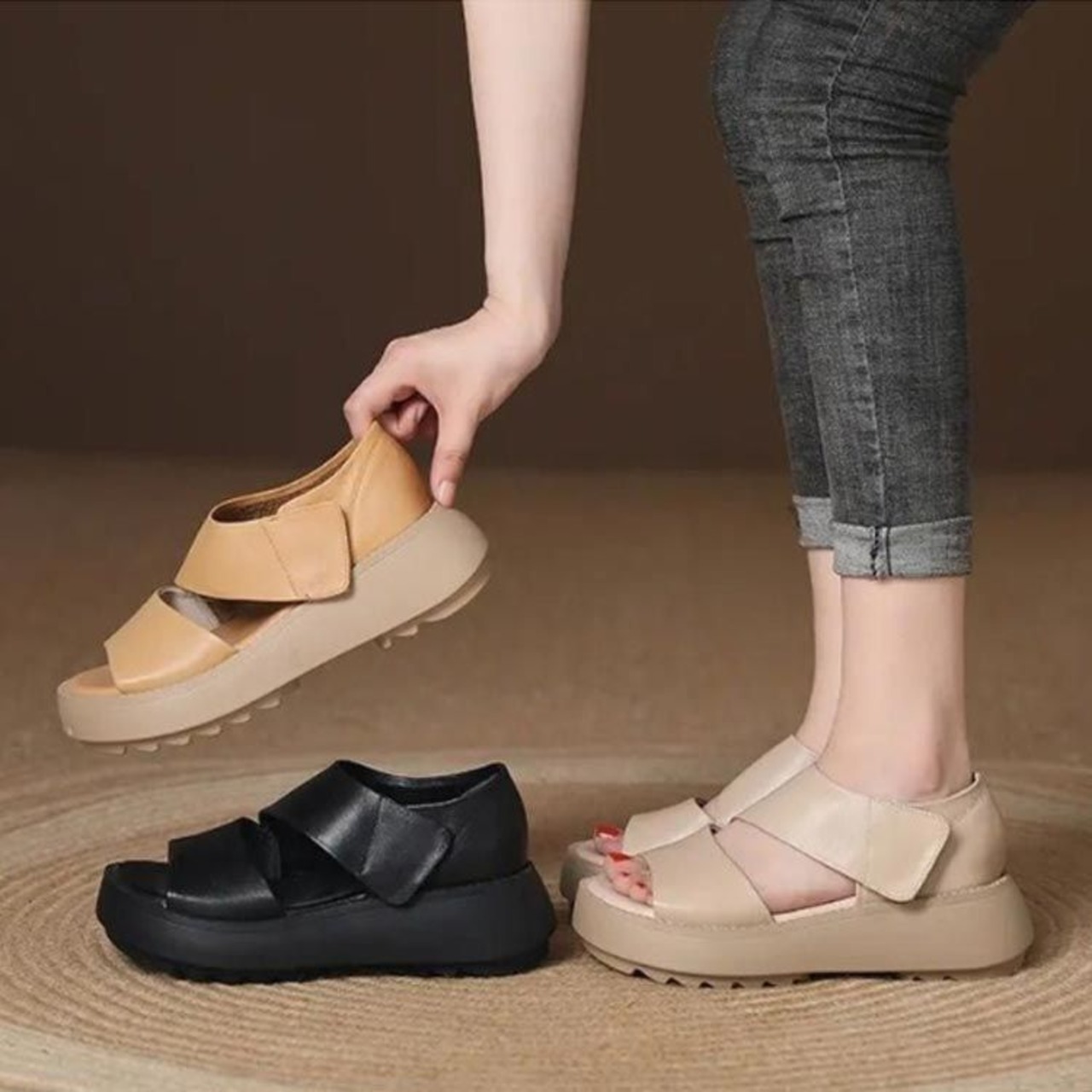 【レトロな厚底サンダル】【22.5-25.0cm】【3color】