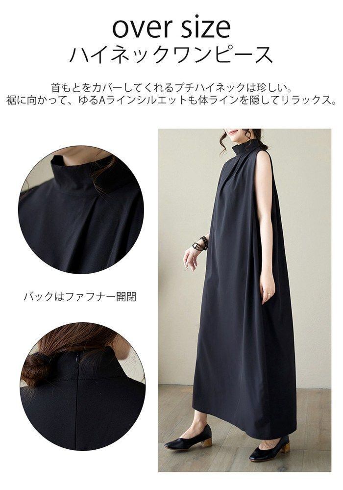 新品 ノースリーブ ワンピース ハイネック レディース 春夏 ロング Aライン ハイネックワンピース ノースリーブワンピース ロング マキシ丈 シャツワンピース シャツワンピ ゆったり 大きいサイズ 体型カバー 黒 ブラック 袖なし kkkmri | オキナ商店