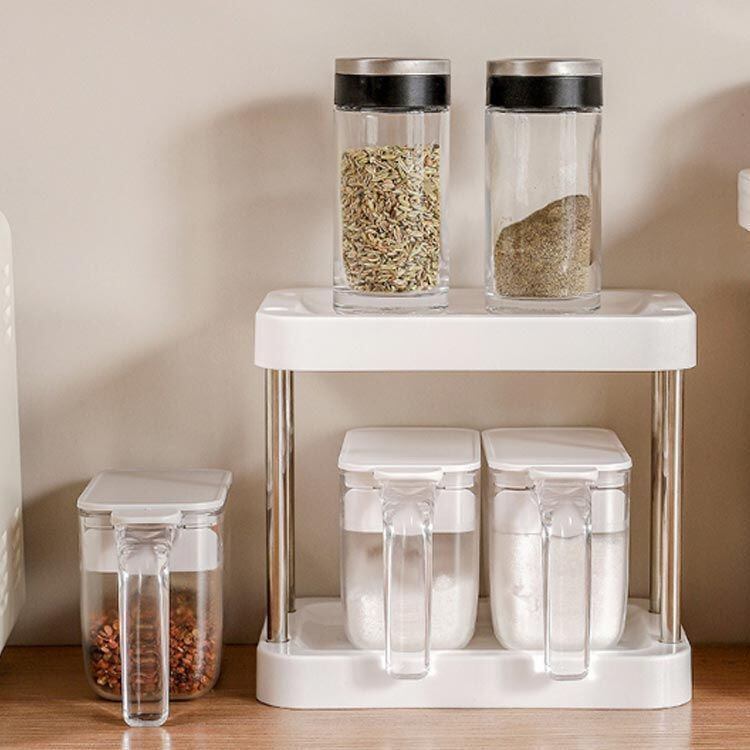新品 2個セット 調味料入れ 使いやすい おしゃれ 調味料ケース 調味料ポット 450ml 調味料 砂糖 塩入れ 保存容器 スプーン付 砂糖ケース コショウ入れ 小麦粉 塩 収納 ポット ワンプッシュ開閉 kkkdwo | オキナ商店