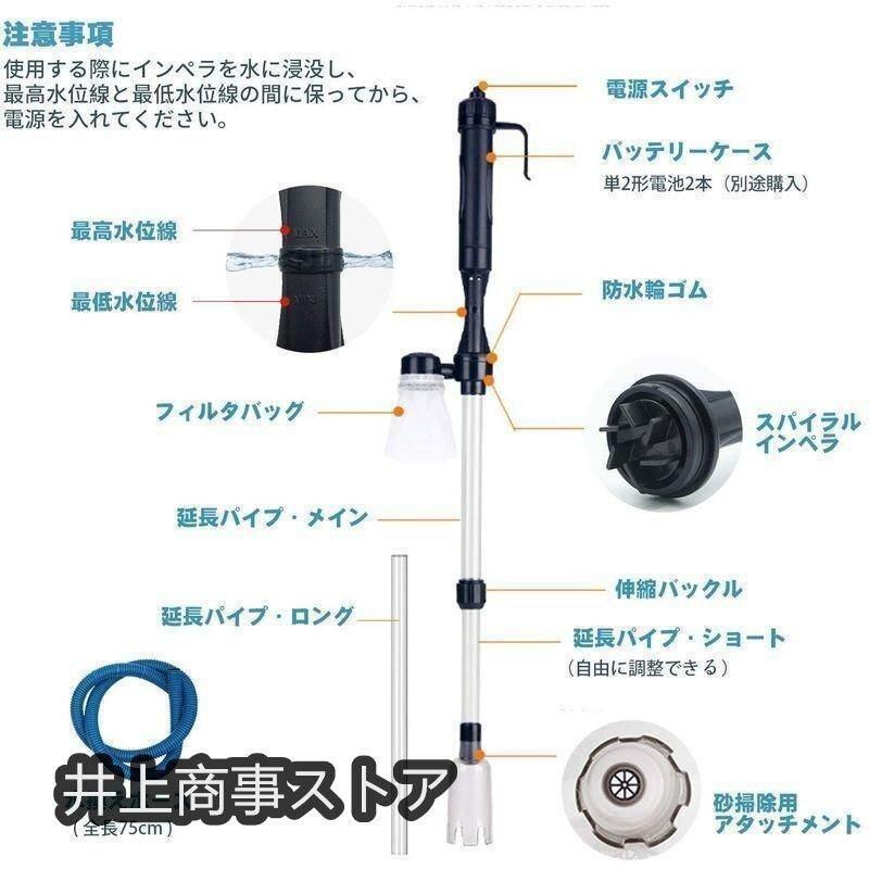 ・多機能のデザイン:本クリーナーはバッテリーを入られて、アダプタによって直接使われます。自由に長さを調整でき:62/73cm。中型と大型のクアリウムに適用します。