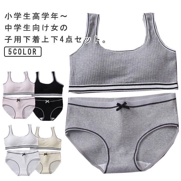 新品 ガールズ ジュニアブラジャー 上下セット 4点セット 肌着 ブラ S キッズ 下着セット 中学生 カップ付き 女の子 ショーツ アンダーウェア スポーツブラ ジュニアブラ インナーパンツ 小 kkkojf | オキナ商店
