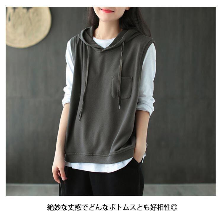 着回し力抜群!流行りに左右されないフード付きノースリーブパーカーが新登場。