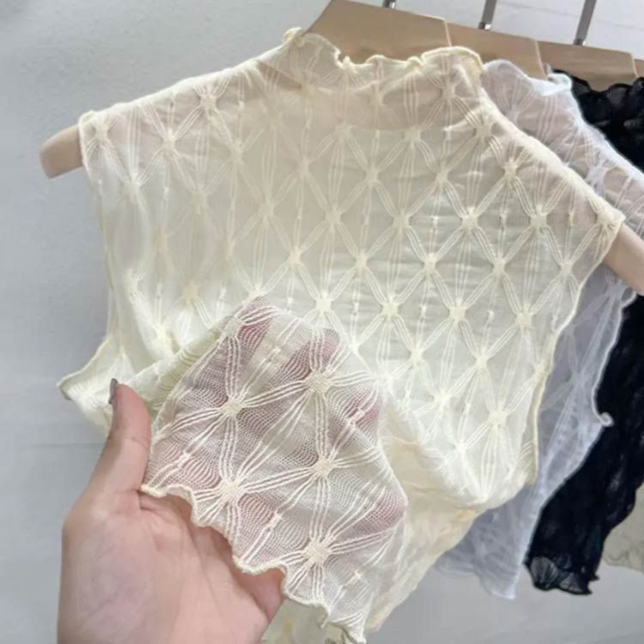 新品 シースルー 付け襟 ハイネック レディース タンクトップ 日焼け防止 プルオーバー タートルネック カットソー 重ね着用 レイヤード ノースリーブ 花柄 レース フェイクカラー 冷房対策 エアコン 首 kkkbbj