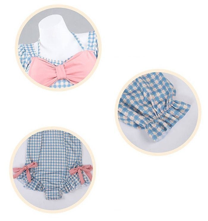 新品 ワンピース水着 レディース スクエアネック 体型カバー 半袖 背中見せ 水着 ママ水着 10代 20代 30代 40代 大人 女子 おしゃれ 格子柄 チェック柄 リボン 海 ビーチ 夏 kkkwjv | オキナ商店