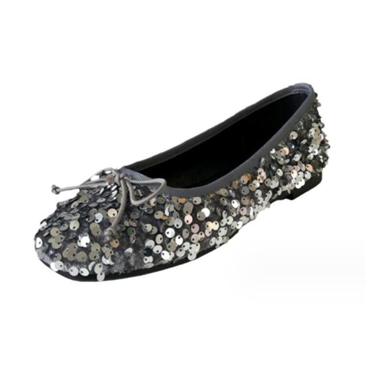 新品 春夏 パンプス レディース スパンコール リボン キラキラ グリッター バレエシューズ フラット ぺたんこ スクエアトゥ ローヒール かわいい 痛くない 歩きやすい 疲れにくい カジュアル きれい kkktpw | オキナ商店