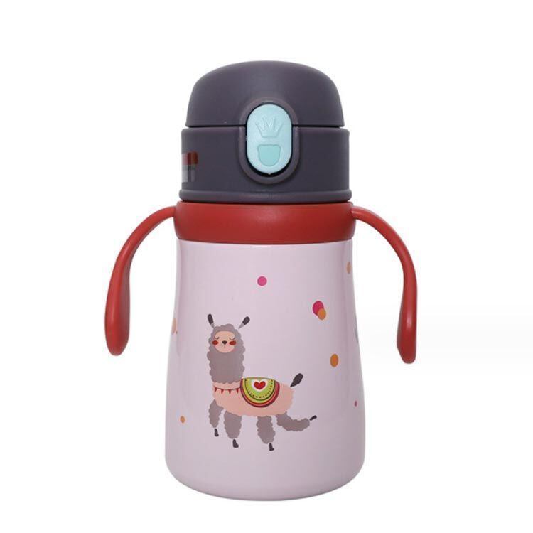 新品 ストロー 直飲み 2way 水筒 キッズ ステンレス 子供 保温保冷 魔法瓶 ストローマグ 持ち手付き 360ml 子供用水筒 ワンタッチ 肩紐 可愛い 大容量 軽量 通学 入園 kkkoaa | オキナ商店