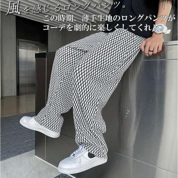 ワイドパンツ メンズ リラックスパンツ 薄手 涼しい ガラガラ 柄々 個性 イージーパンツ ボトムス 夏 秋 春 カジュアル おしゃれ かっこいい メンズファッション