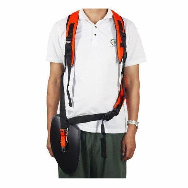 体形に合わせて調節が可能なダブルショルダーの草刈機ハーネスです。