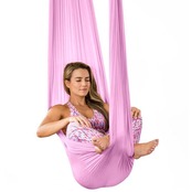 ?【空中でしかできない動きが出来る空中ヨガ】楽しみながら同時に体幹も鍛えられ 空中で宙に浮いた状態でかすかかに揺れる布につつまれることで 胎児に戻ったかのようなリラックス状態に。